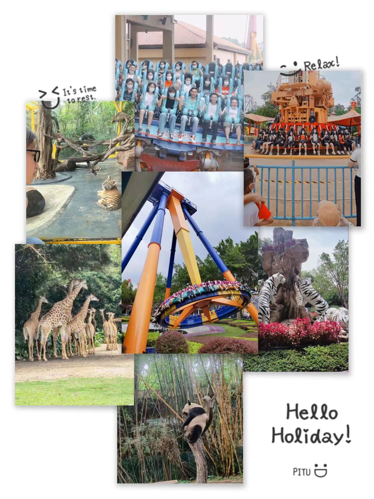雖然天氣炎熱,但是絲毫擋不住人的熱情。在長(zhǎng)隆歡樂世界六大主題區(qū):叢林探險(xiǎn)、律動(dòng)天地、歡樂嘉年華、星夢(mèng)奇園、感動(dòng)空間、尖叫地帶、兩大演藝廣場(chǎng)+劇場(chǎng)表演區(qū)域,隨處可見人盡情體驗(yàn)項(xiàng)目的身影,下午出發(fā)長(zhǎng)隆野生動(dòng)物園,和動(dòng)物近距離接觸,感受大自然的無(wú)限奧妙及魅力,大家三五成群地結(jié)伴而行,激情洋溢,喜出望外,體驗(yàn)過程中不忘留影打卡,記錄旅行中的點(diǎn)點(diǎn)滴滴。